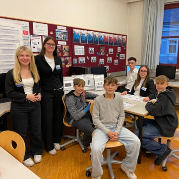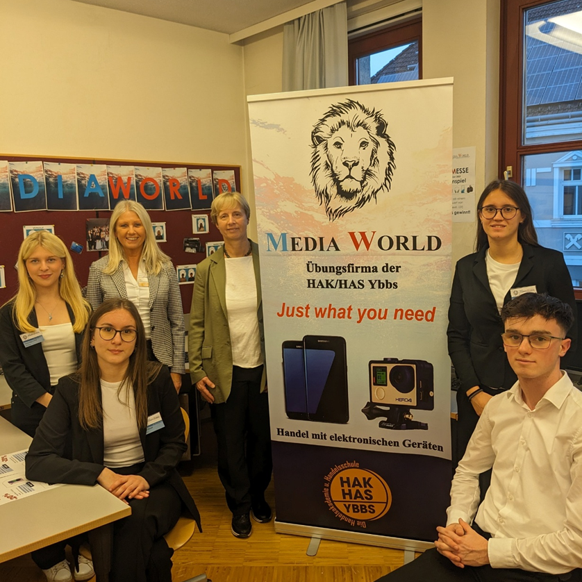 Die Hausmesse im Rahmen der Infotage der HAK/HAS Ybbs fand am Freitag, den 14. November 2025 von 14:00 bis 18:00 Uhr im betriebswirtschaftlichen Zentrum statt. Die Besucher wurden von den Mitarbeiter:innen aus den Abteilungen Verkauf und Marketing empfangen. Bianca Aigelsreiter und Viktoria Übleis (Marketing) gaben einen Einblick in die Übungsfirma. Anschließend führten Marie Harant und Christian Nachbargauer (Verkauf) zahlreiche Verkaufsgespräche. Im Rahmen eines Gewinnspiels hatten die Besucher die Möglichkeit, ab einem Einkaufswert von € 1.500 netto interessante Preise zu gewinnen. Insgesamt wurde ein Gesamtumsatz von € 61.000 ,- erzielt, wobei das Apple iPhone 14 128 GB purple mit 47 verkauften Stück das beliebteste Produkt war.
